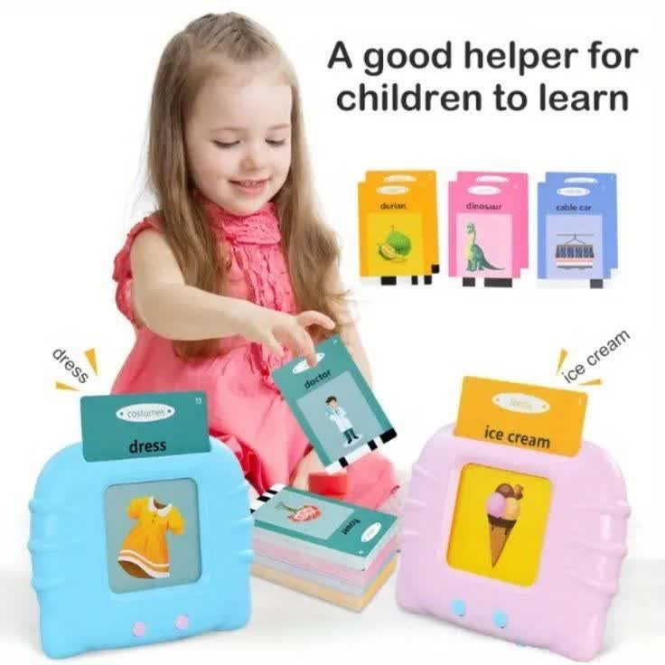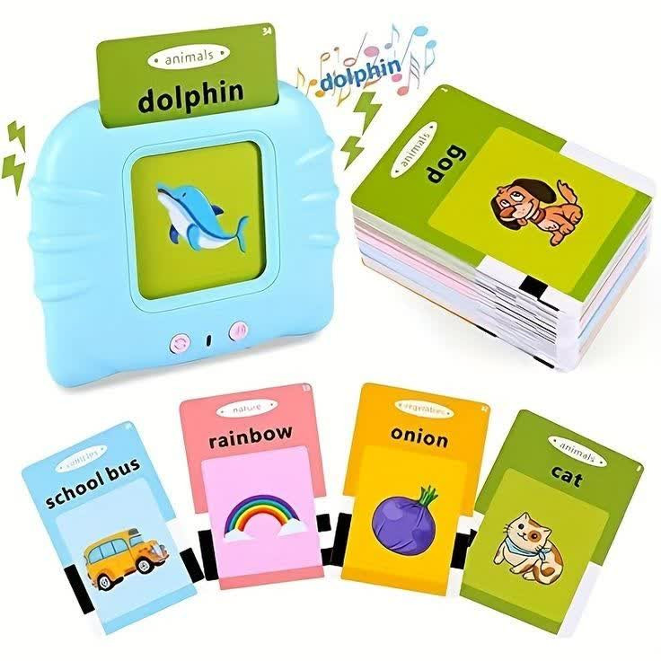 سخنگو بودن آن به این صورت می باشد که هر کارتی را که در داخل دستگاه قرار می دهید می توانید تلفظ آن را به صورت انگلیسی بشنوید. فلش کارت سخنگو آموزش زبان انگلیسی رنگ آبی و صورتی دارای ۲۲۴ عدد فلش کارت به صورت زیر است.