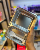 ظرفی دو قسمتی با درب واشردار و ۴ قفل محکم همراه یک قاشق پلاستیکی زیبا که ظاهرش رو دلنشین و کودکپسند کرده.