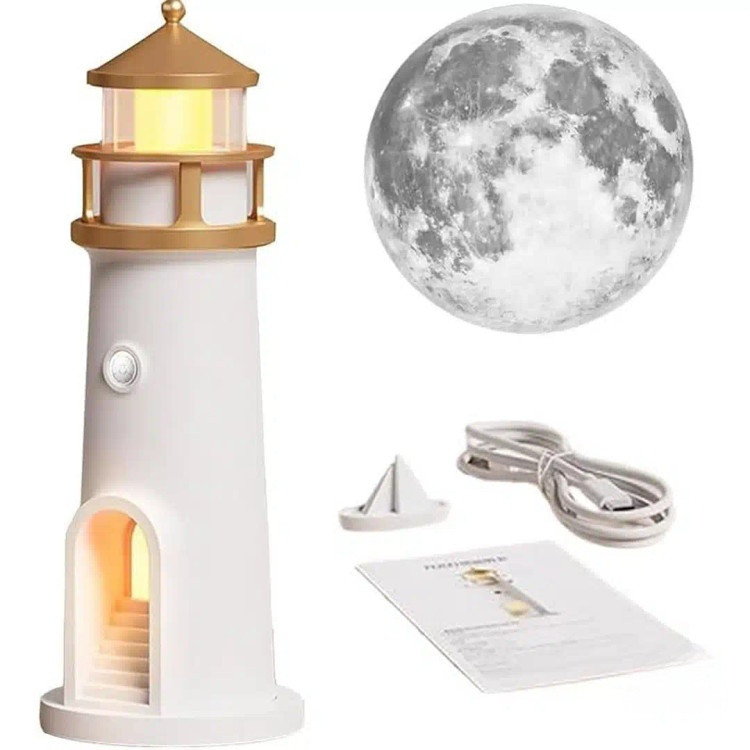 چراغ فانوس دریایی اسپیکردار سنسوردار یک چراغ خواب و یک دکوری جذاب می باشد که دارای اسپیکر و پروژکتور ماه نیز می باشد که به همراه باطری داخلی شارژ از طریق تایپ سی و یو اس بی می باشد و می تواند یک هدیه خاص و بی نظیر برای عزیزان شما باشد،