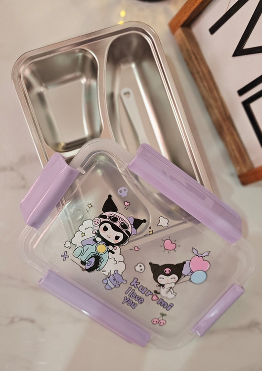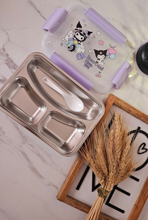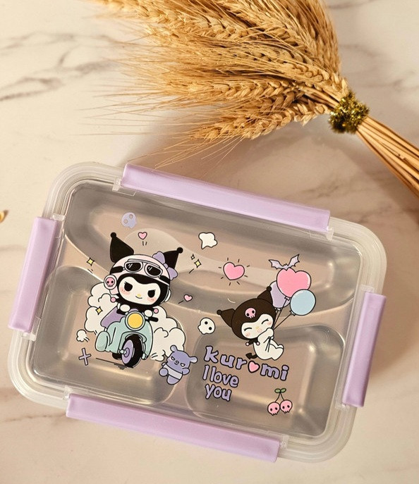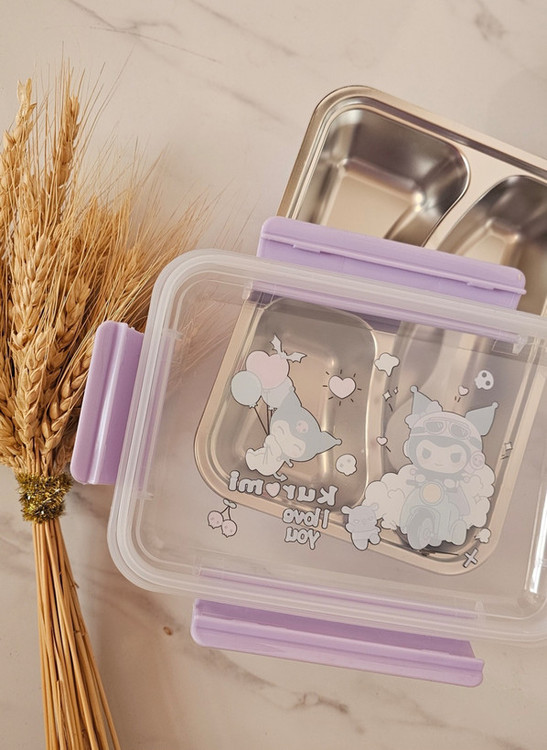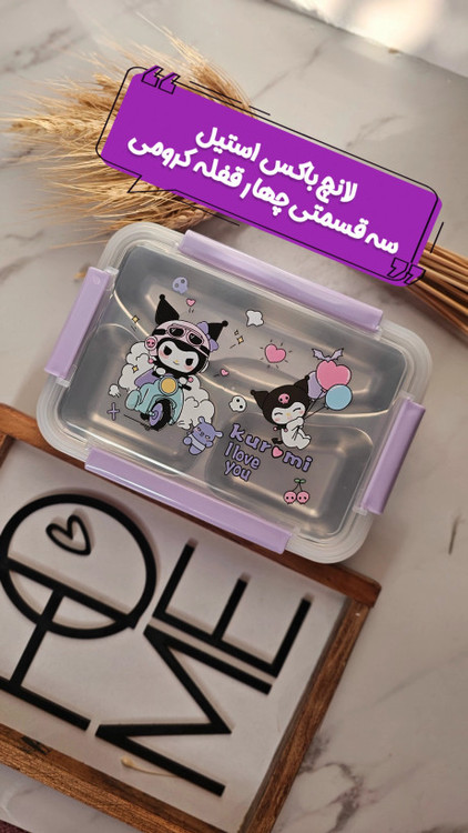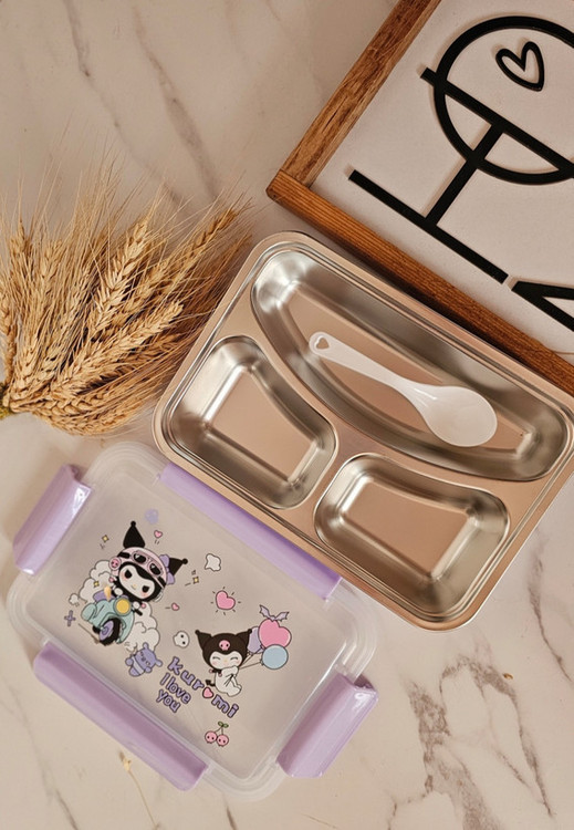 ✨ لانچباکس استیل کودک سه بخشی طرح Kuromi ✨