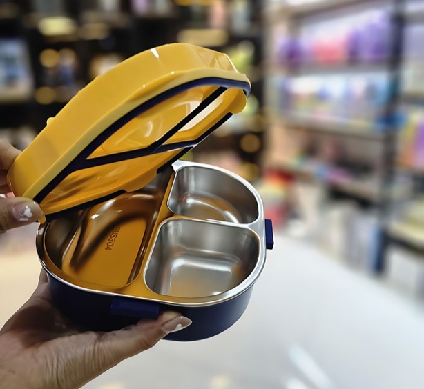 طبقهی بالا: ساختهشده از پلاستیک فودگرید با کیفیت عالی، دارای بخشبندی مجزا و کاسه کوچک دردار برای سس یا میوه 🍇