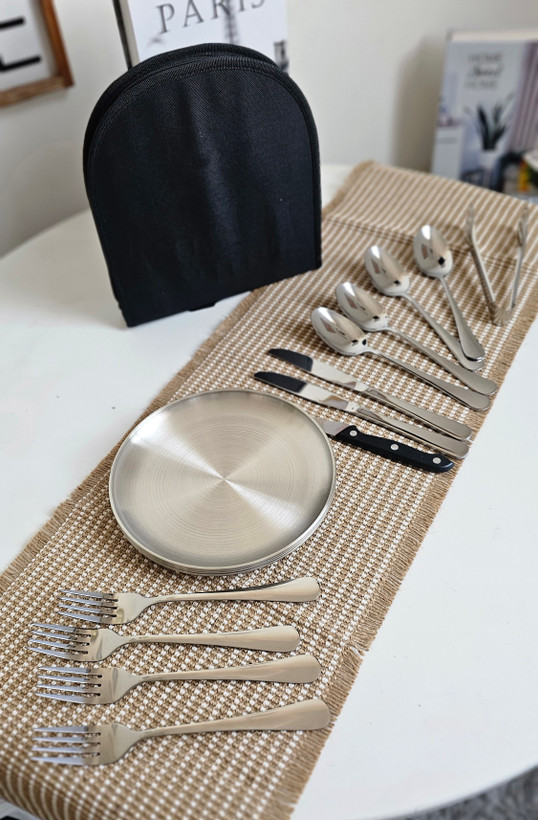 ست ظروف مسافرتی ۴ نفره استیل سیلور کیف دار