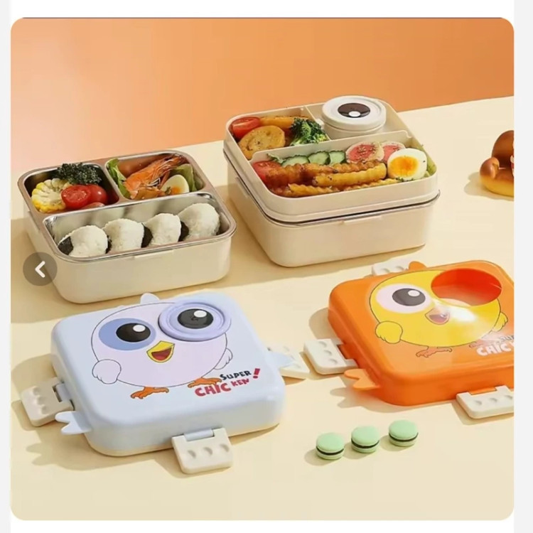 ظرف غذا لانچ باکس دو طبقه استیل طرح جوجه