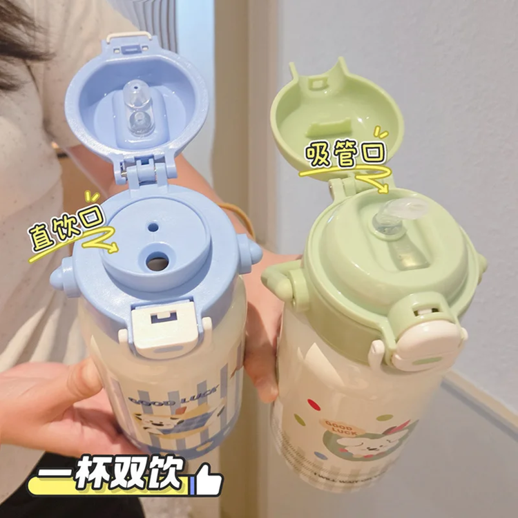قمقمه استیل ۵۰۰ میل دو حالته نی دار فانتزی کودک