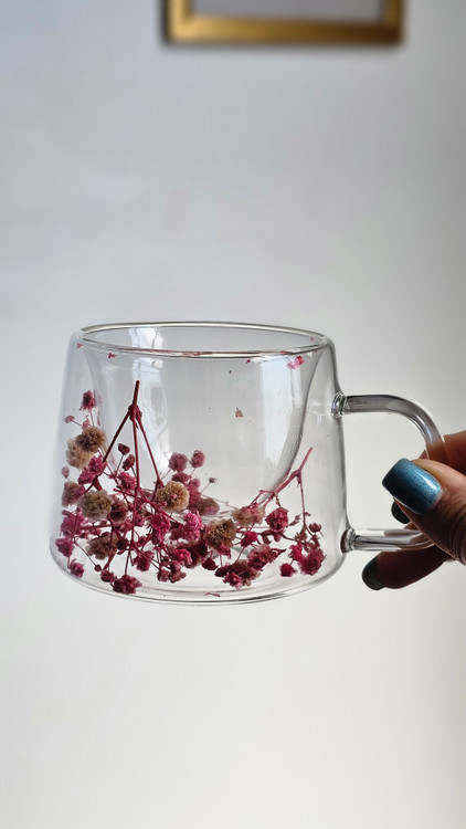 لیوان پیرکس دسته دار دوجداره گل خشک وارداتی