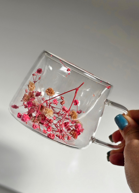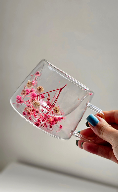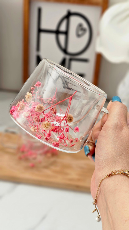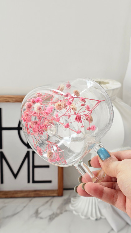 لیوان پیرکس دسته دار دوجداره گل خشک وارداتی